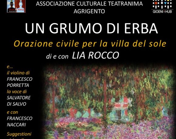 Domenica 15 febbraio, alle ore 17:30, nella sala del Teatranimahub, il nuovo centro culturale realizzato dalla Associazione Culturale TeatrAnima all’interno dell’ex Istituto Gioeni/Salesiani di Via Oblati 96, andrà in scena “UN GRUMO DI ERBA – Orazione civile per la Villa del Sole” di e con LIA ROCCO e con la partecipazione di FRANCESCO NACCARI.