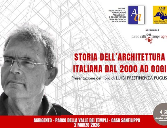 Si svolgerà domani, alle 15:30, a Casa Sanfilippo, la cerimonia di presentazione del libro “La Storia dell’architettura italiana dal 2000 a oggi” del noto critico e storico dell’Architettura contemporanea Luigi Prestinenza Puglisi, nel corso della quale interverranno noti rappresentanti del mondo accademico e del mondo professionale.