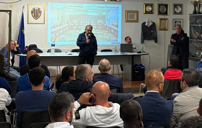 Il Presidente Gero Drago, insieme al Delegato Provinciale Angelo Caramanno, ha colto l’occasione per fare il punto sull’organizzazione arbitrale e per affrontare, grazie anche agli interventi di Giuseppe Sicurella (Responsabile Futsal) e Salvatore Fucà (Collaboratore Ufficio di Presidenza AIA), numerose tematiche tecniche e regolamentari, rispondendo ai quesiti posti dai dirigenti presenti.