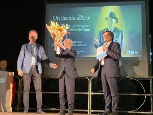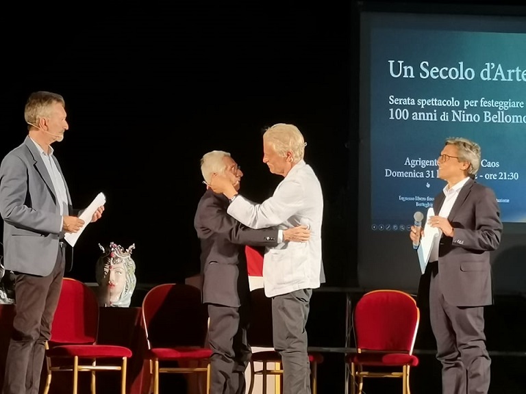 Nino Bellomo, classe 1922, elegantissimo nel suo abito scuro, sale sul palco accompagnato dal figlio Francesco, regista, produttore teatrale e direttore artistico della Fondazione Teatro Luigi Pirandello, che ha ideato la manifestazione. La ditta Bellomo & Bellomo, visibilmente emozionata ha dato il via alla serata, magistralmente condotta, da Salvo La Rosa, e con la partecipazione straordinaria di Michele Placido.