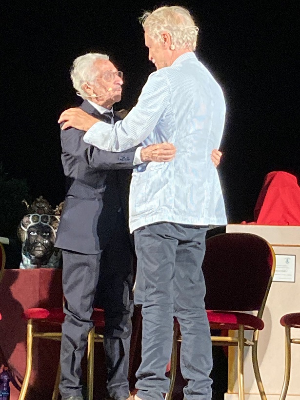 Poi il caloroso abbraccio con Michele Placido: “Caro Nino ti devo tanto; tu qui ad Agrigento mi hai fatto conoscere profondamente Luigi Pirandello. Con te abbiamo fatto la lunghissima tournée con Uno Sguardo dal Ponte. Sei stato esempio di equilibrio per tutti noi”. Poi sorridendo ha aggiunto: “Mi hai anche insegnato anche una sana abitudine, quella di mangiare poco la sera”.